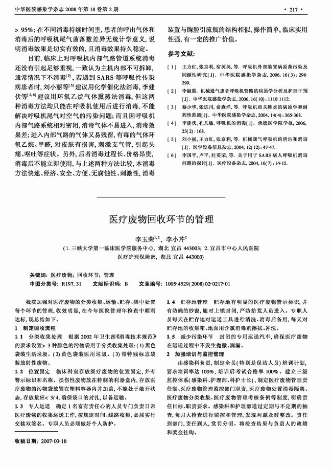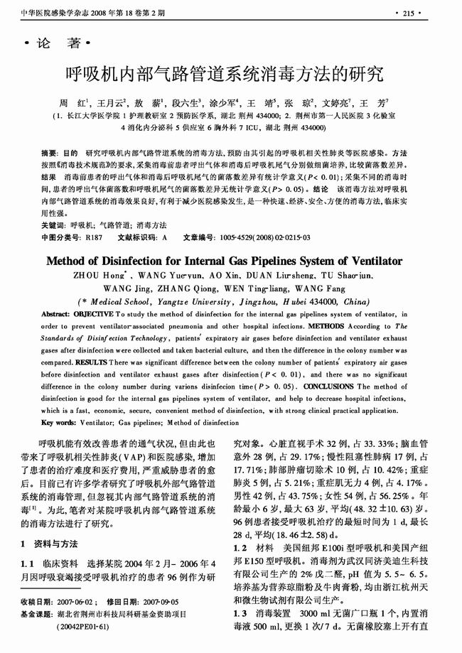 呼吸機內部氣路管道系統消毒方法的研究_周紅