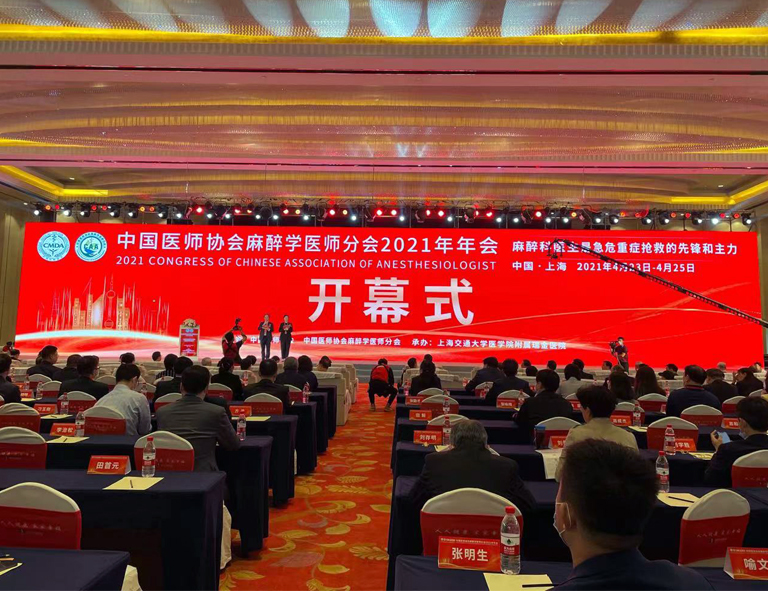2021年4月24日,中國醫師協會麻醉學醫師分會2021年年會開幕式在上海富悅大酒店隆重舉行。本次大會由中國醫師協會、中國醫師協會麻醉學醫師分會主辦,上海交通大學醫學院附屬瑞金醫院承辦。會議采取線下講座+線上直播的形式同步進行。